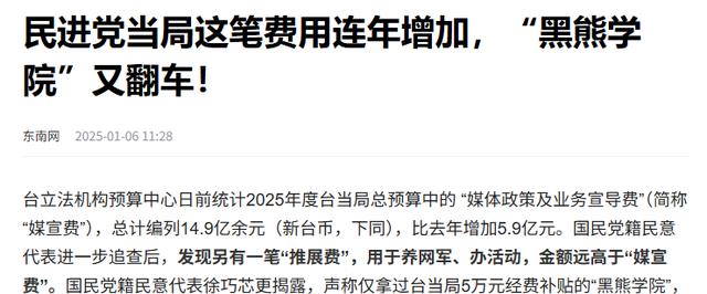 东南网2025-01-06——民进党当局这笔费用连年增加,“黑熊学院”又翻车!