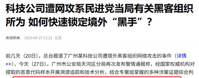 央视新闻2025-05-27 ——科技公司遭网攻系民进党当局有关黑客组织所为 如何快速锁定境外“黑手”?