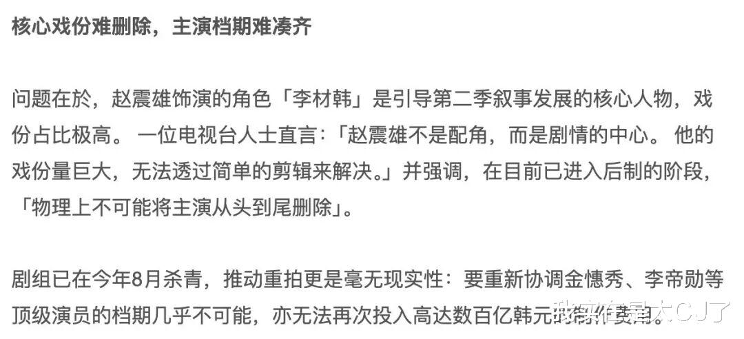 目前情况是要召集主创们重拍在执行层面又不太可能,但如果顶风照播又会对受害者们造成N次加害……原本的爆剧种子现在变成了怎么处理都很为难的烫手山芋。