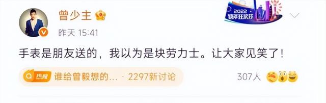 其实在事情发生之后,曾毅曾经企图解释过,他说表是朋友送的,至于表上的英文是什么意思,他本人并不知情。