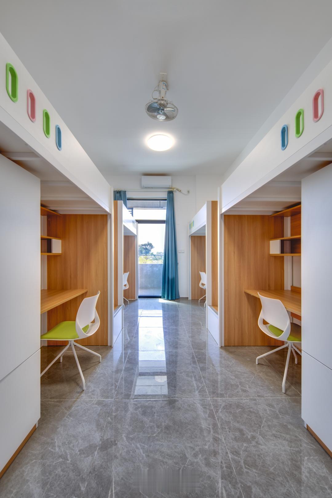 崭新的公寓楼十分抢眼,四人间、双人间、单人间布局合理,以智能化工程进行管理,师生生活更便捷、安全。
