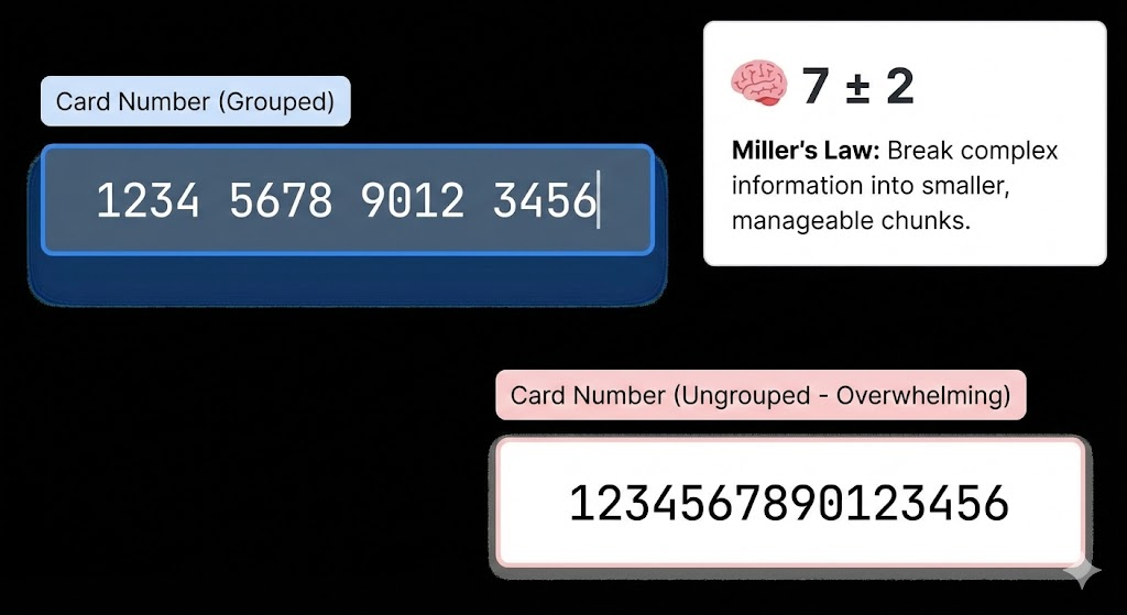 比如,我们在设计长串的手机号或银行卡号输入框时,通过空格或横线进行分组显示,就能显著降低用户的记忆负担。