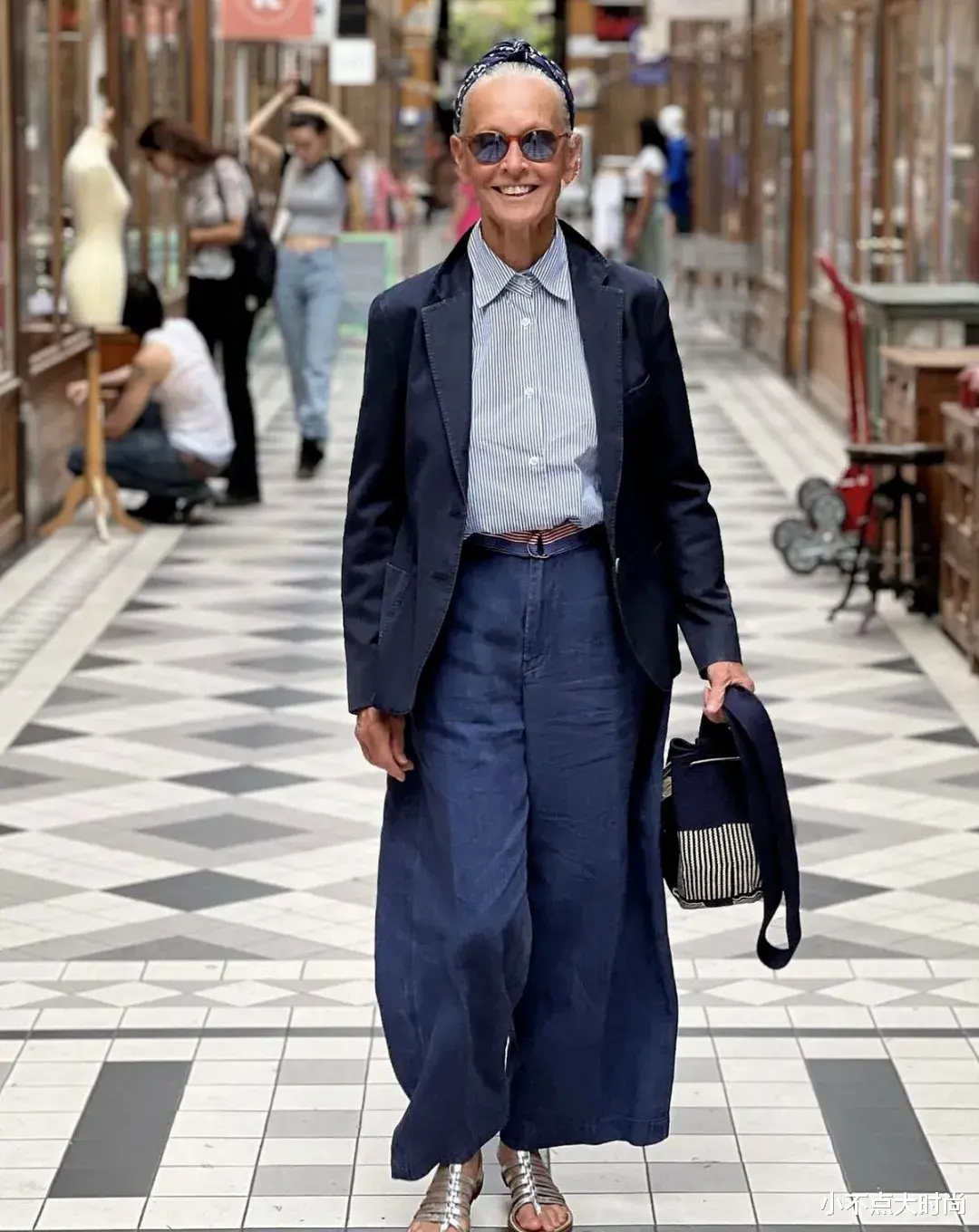 矮个子姐妹还可以学习这位法国奶奶的减龄时尚感穿搭秘诀,就是多穿直线条的衣服。