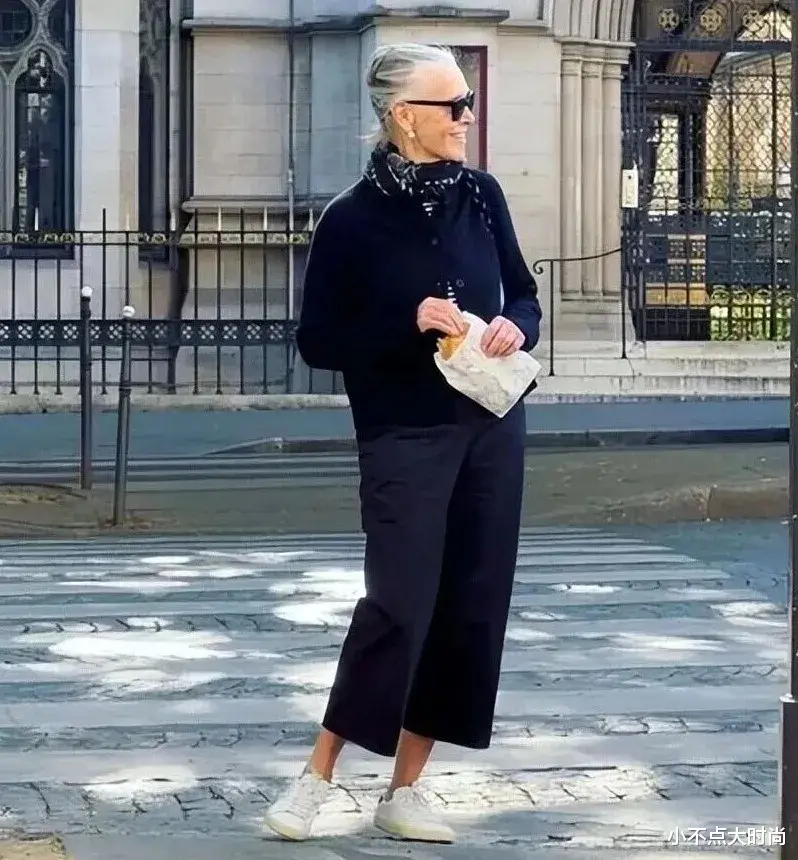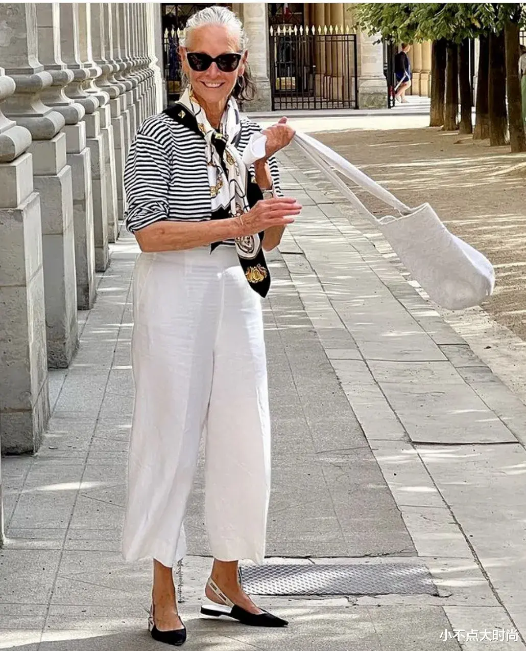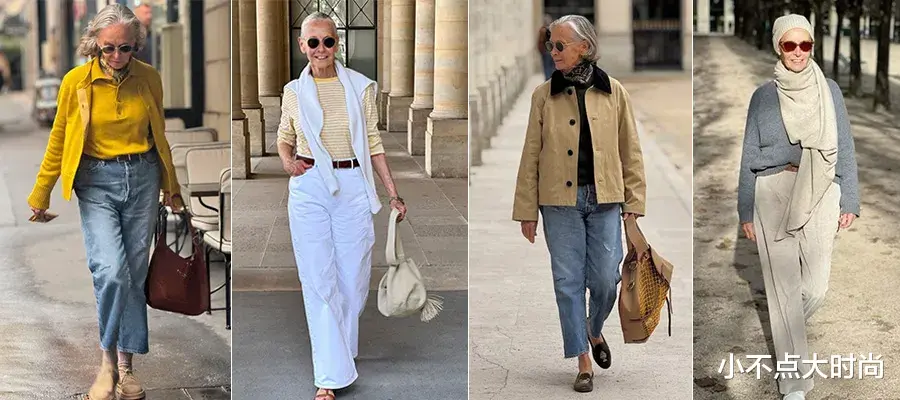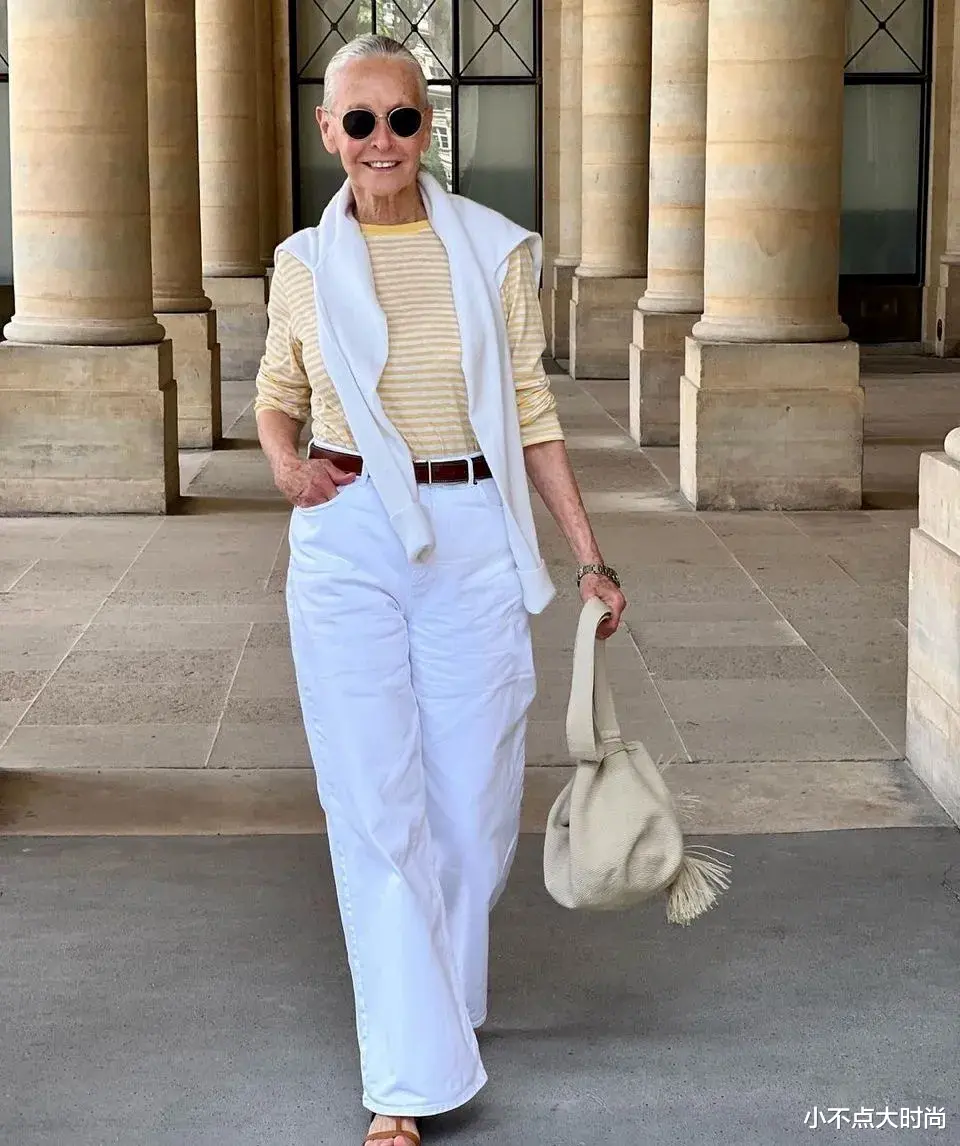 今天点点就要给矮个子姐妹,分享一位法国白发奶奶的日常穿搭,很显高,偏向简约、利落、气质感。