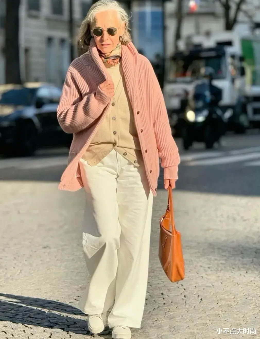 法国奶奶的时尚精神在于真心接受当下的自己,包括衰老的痕迹,她们的白发不刻意染色,展现最真实、自然的自己,反而穿出了有灵魂的时尚搭配。