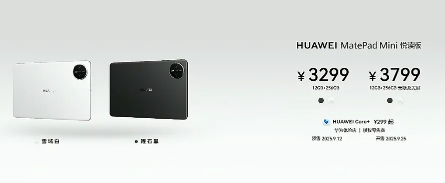 至于价格,华为MatePad Mini有128G+256G、12G+512G和12G+512G柔光屏版,价格分别是3999元、4499元和4999元。