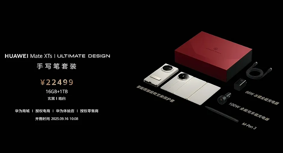 但实际上,这次华为Mate XTs的三个版本都比去年XT便宜了2000块,其中16G+256G卖17999元,16G+512G卖19999元,16G+1TB卖21999元。还有个单独的手写笔套装,多了一根华为M-Pen3手写笔,价格是22499元。