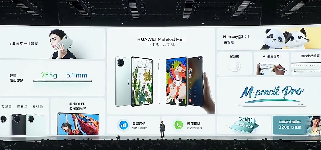 除了MateXTs和MateTV外,其实我对MatePad Mini更感兴趣!上一次华为出小屏平板还是2019年的M6高能版,这次MatePad Mini由何刚发布,口号是“小平板、打手机”。