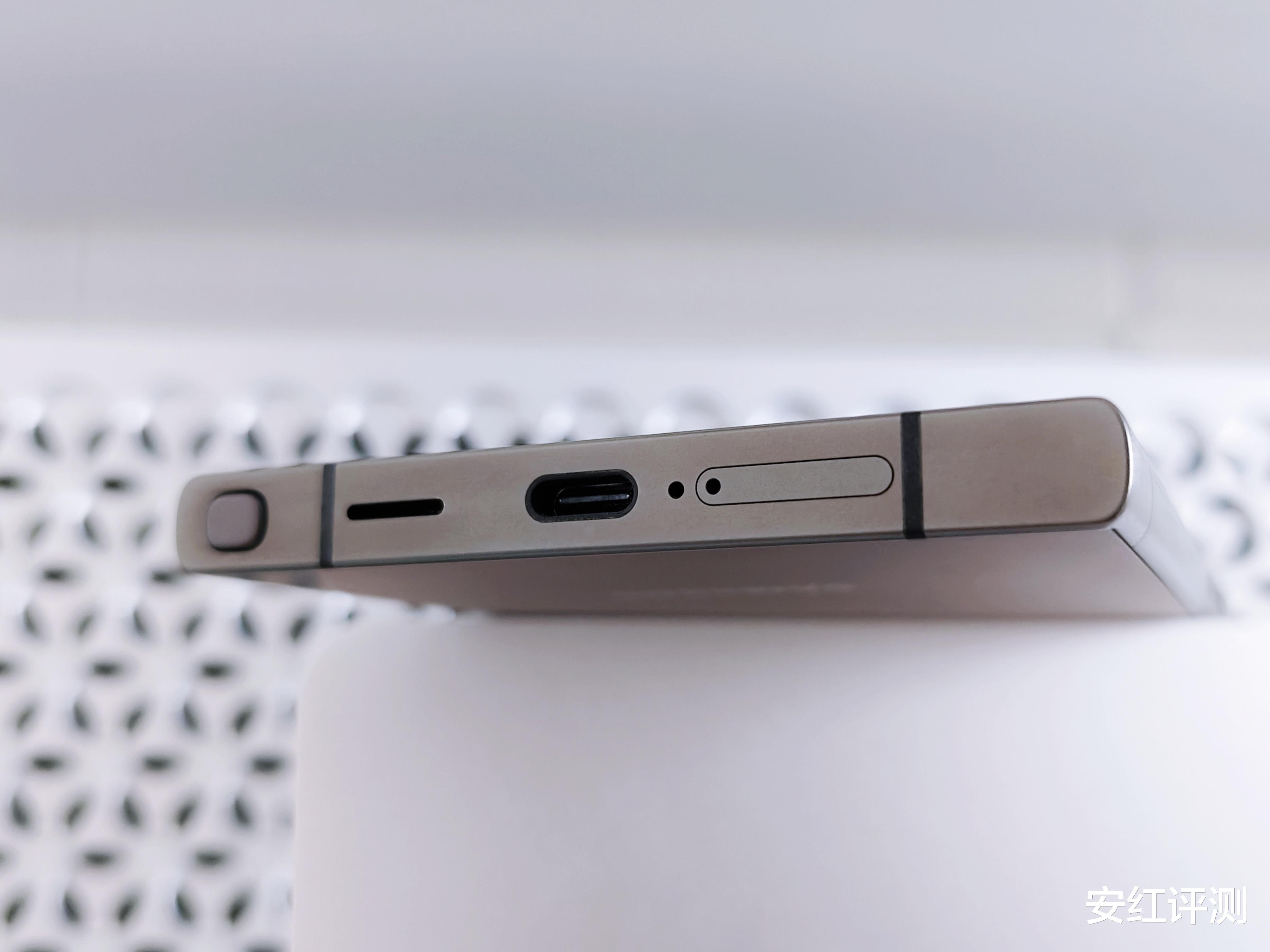 得益于高度集成方案,三星Galaxy S24 Ultra顶部仅保留有Mic孔,非常简洁。底部设有Type-C接口、扬声器、麦克风、SIM卡槽和S Pen插口,在视觉上比较和谐。右侧则是电源按键与音量调节按键,单手即可快捷操控。