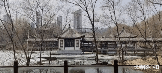 深秋的午后,我站在新城饭店的湖边,望着那一组突兀而又和谐的水上建筑。它们像是被施了魔法的江南碎片,不慎飘落在这北国的湖面上,带着与生俱来的温婉,与周遭粗犷的秋色对峙着。
