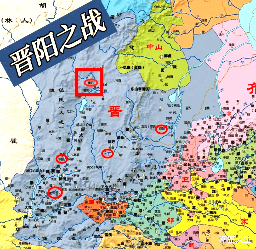 2. 第二阶段(公元前497年):赵氏发生内讧(这里面就是赵氏孤儿的典故了,回头我们细聊),范氏和中行氏支持失败的一方,与赵、魏、韩、智四家开战。