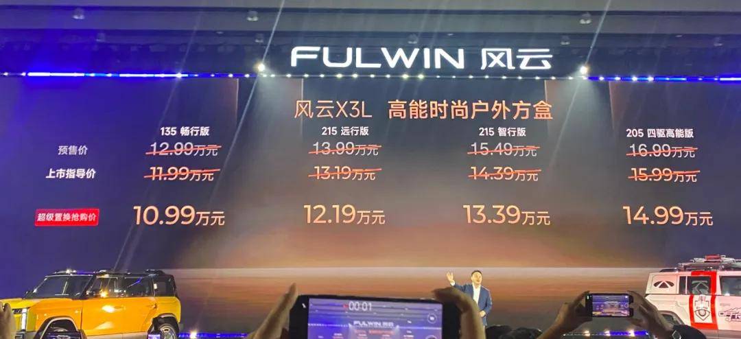 而在各种方盒子中,奇瑞旗下前不久于成都上市的增程式车型风云X3L,无疑是极有特点的一款。共4个版本,入门车款是135畅行版,售价10.99万元起,另外还有215远行版售价12.19万元、215智行版售价13.39万元、205四驱高能版售价14.99万元。同时还推出了6大官方改装版,加上不错的产品价值,让它成为一款极为好玩又性价比很高的方盒子车型。