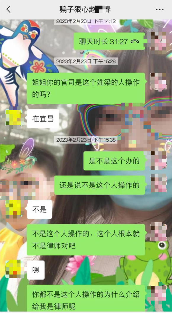 2018年左右,赵某春开始频繁主动联系赵女士及其家人,声称自己认识一支律师顾问团队,自己的离婚官司就是由该团队处理,且花费极少。对于深陷债务和单亲抚养双重压力的赵女士来说,低成本解决债务的承诺,加上双方的亲戚关系以及赵某春所谓的亲身案例,她逐渐放下防备。