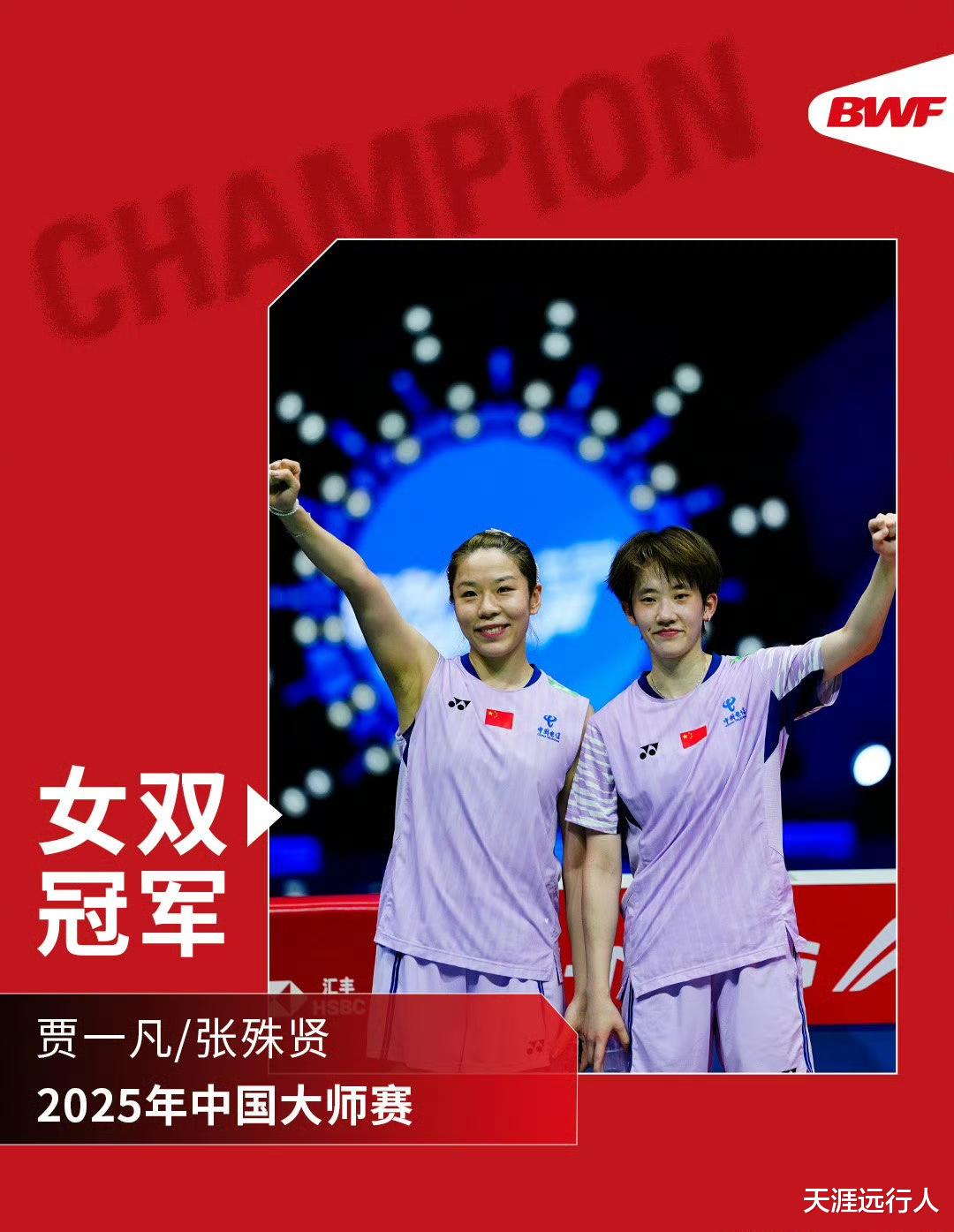 贾一凡/张殊贤21-19, 16-21, 21-13击败金慧贞/孔熙容,终结四连败,在双方的第五次交手首次拿到胜利,获得首座超级750冠军,收获本赛季第3冠,也是两人职业生涯合作以来继2025瑞士公开赛,2025中国香港公开赛后第三项世界羽联超级巡回赛的女双冠军。
