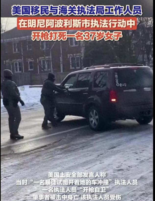 移民与海关执法局工作人员在明尼阿波利斯市执行“有针对性”的行动时,与一名女子发生冲突。执法人员声称这名女子“试图开着她的车冲撞”他们,一名执法人员“开枪自卫”导致该女子被击中身亡。