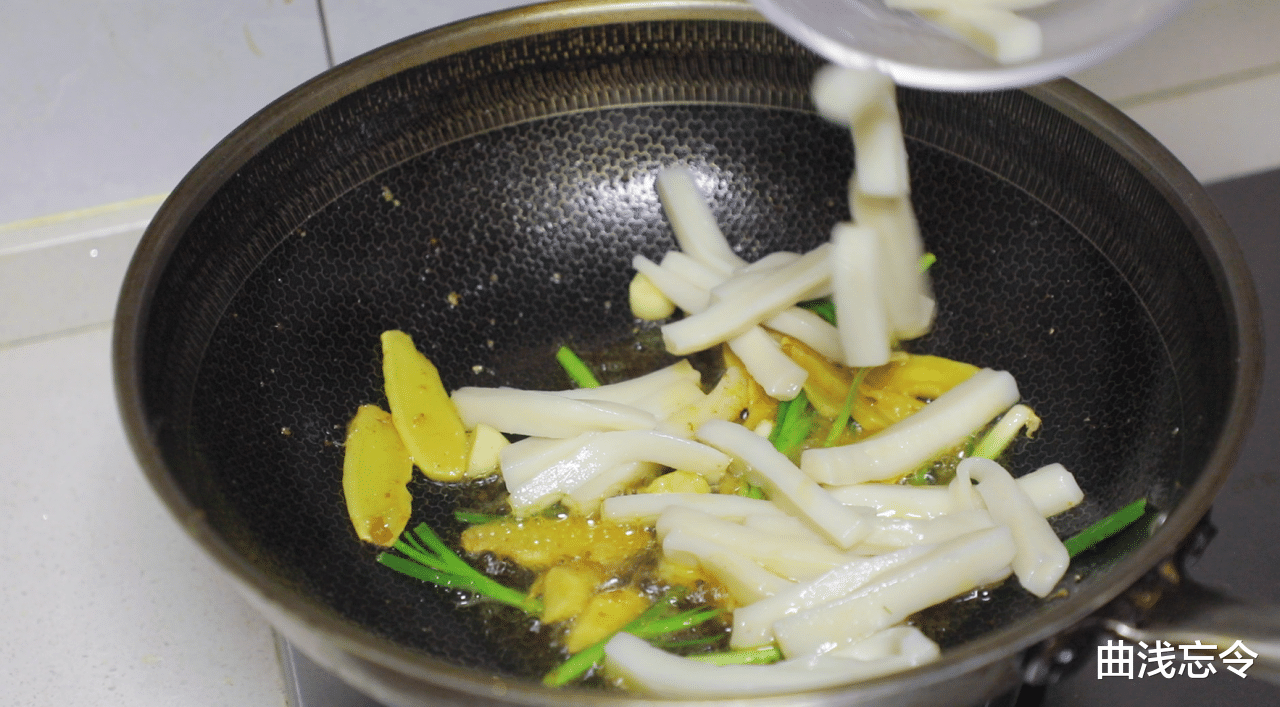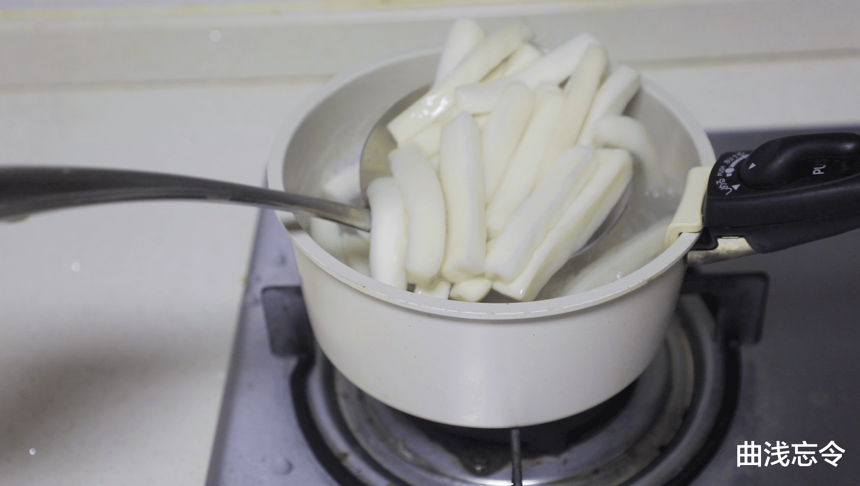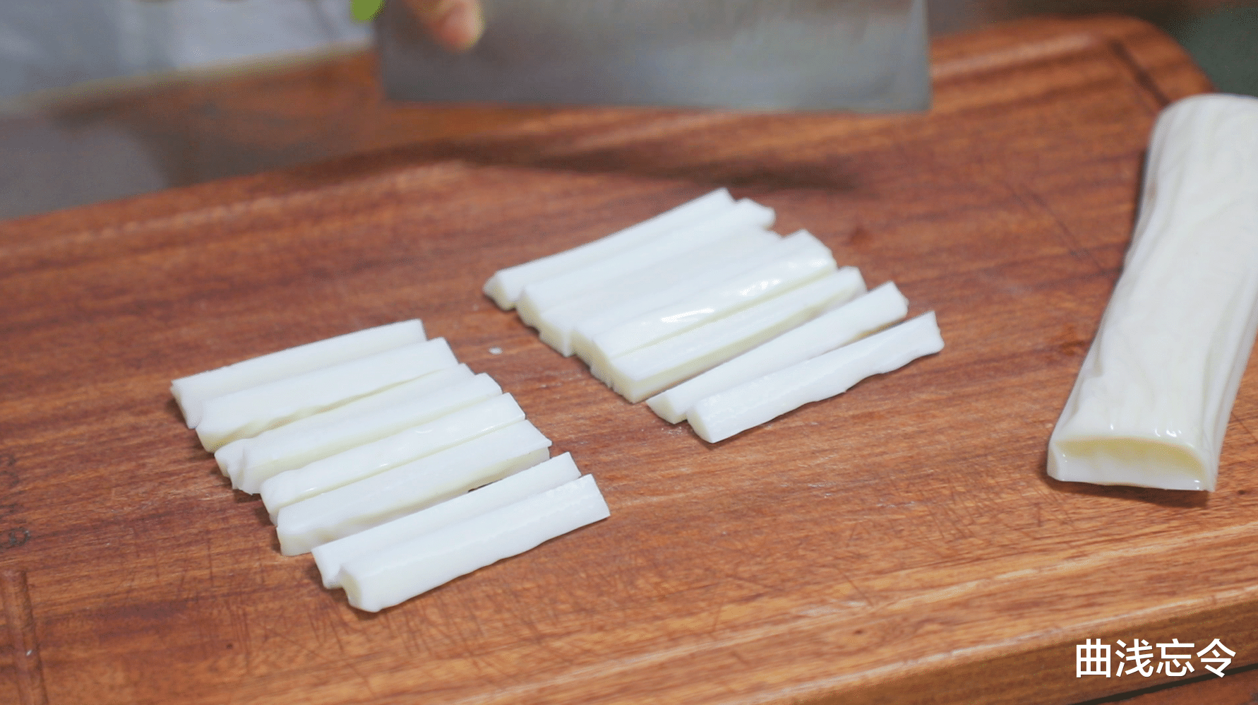 3.年糕切好后可以直接下锅,也可以提前用清水浸泡一会或焯水分钟提前煮软,炒的时候比较容易炒软。