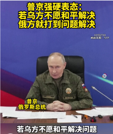 2025年12月27日,俄罗斯总统普京出现在俄罗斯联合部队集群的某个指挥所里。在听取了俄武装力量总参谋长格拉西莫夫关于前线的报告后,普京当场果断宣布:如果基辅当局不愿以和平方式结束此事,俄罗斯将通过武装手段在特别军事行动过程中完成所有面临的任务。
