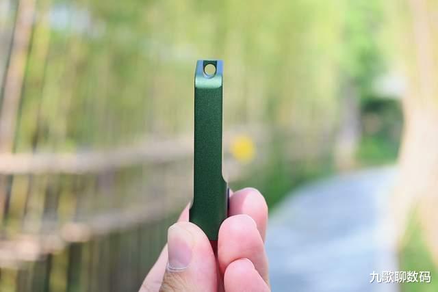 铝合金外壳+金属按键,观感、手感俱佳。盈握于掌间,仅U盘般大小(具体尺寸为64.2*26*14mm),33.4克的重量在携带时也不会有下坠感,十分适宜装在裤兜、口袋。