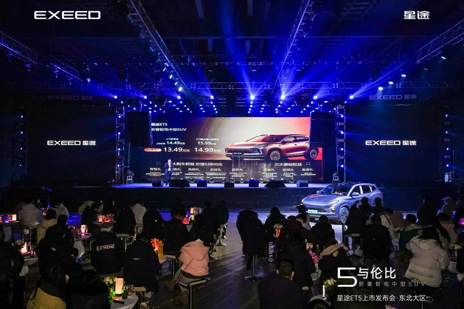 12月14日,辽宁沈阳红梅文创园-原料库LIVE HOUSE内星光熠熠,备受期待的新奢智电中型SUV——星途ET5东北大区上市发布会在此隆重举行。活动现场汇聚众多媒体及客户,共同见证了这一“5与伦比”的划时代车型华丽亮相。