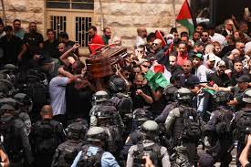 以色列士兵在驱赶抬棺游行的巴勒斯坦民众