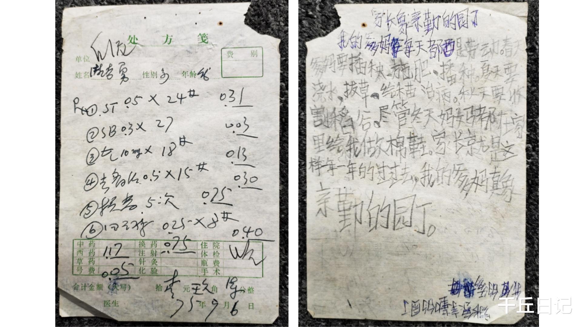 ▲我人生中的第一篇日记(小作文),写在了一张处方笺的背面。