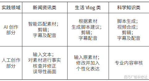 创新应用模式:设计领域适配的人机协作流程,采用领域差异化策略。新闻类可采用“AI生产—人工审核”模式;生活类适用“人工创意—AI执行”;科学类探索“AI预生成—专家审核”。发展更自然的人机共创交互方式。
