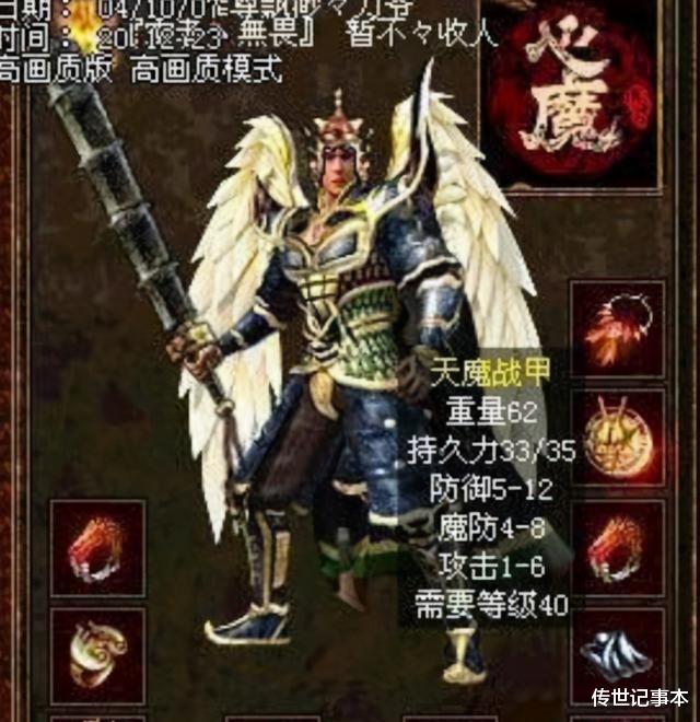 说到真正的神装,战士首选肯定是天魔套。这可是通天教主独家出品,属性相当变态 - 物防5-12,魔防4-7还带1-2攻击,35的持久度让你打架不用担心磨损。最牛的是那个设计,肩甲特意做得又高又威武,穿上去气场直接拉满,在当时那个瘦小的人物模型上显得特别霸气。