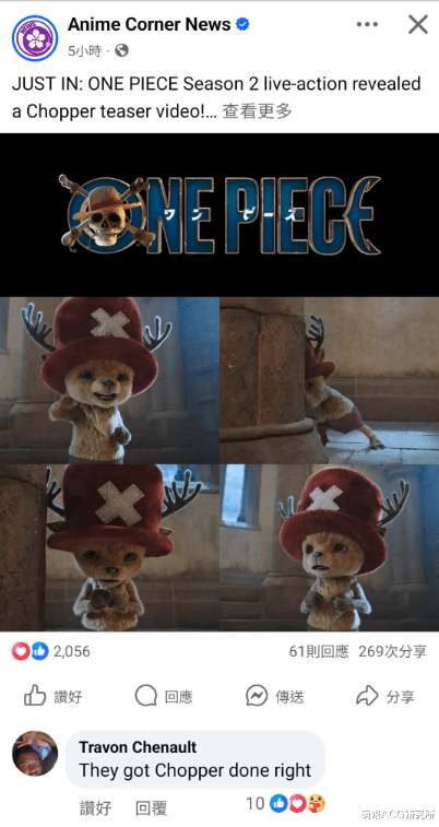 “They got Chopper done right.”“看乔巴走错方向的样子也太可爱了吧!”“这才是真人剧最难的角色,他们做到了!”