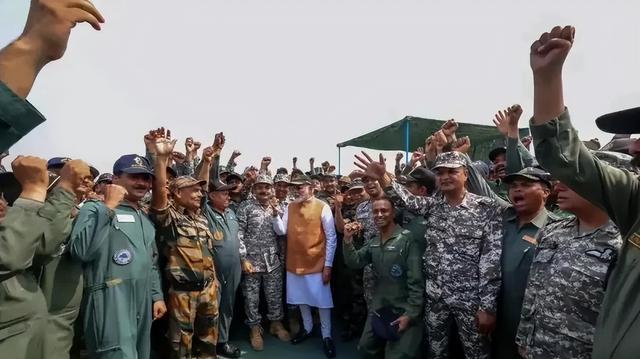 同时莫迪本人更是亲自下场站台,跑到边境附近的亚当布尔空军基地,在一群士兵的簇拥下发表演讲,特意选在 S-400 防空系统旁边站着,就是要告诉大家,巴基斯坦说摧毁了咱们这个系统,那都是瞎掰。