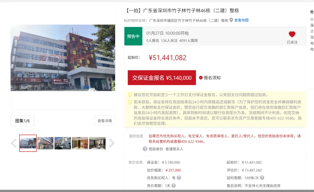 通过查看拍卖资料以及现场查勘走访,该栋楼宇所处片区属于福田优质核心地段,出现挂网法拍情况实属少见。无论是作为中小微企业自购用于发展总部,展示实力及形象,又或是投资物业作为中长期回报率都是妥妥优质资产。