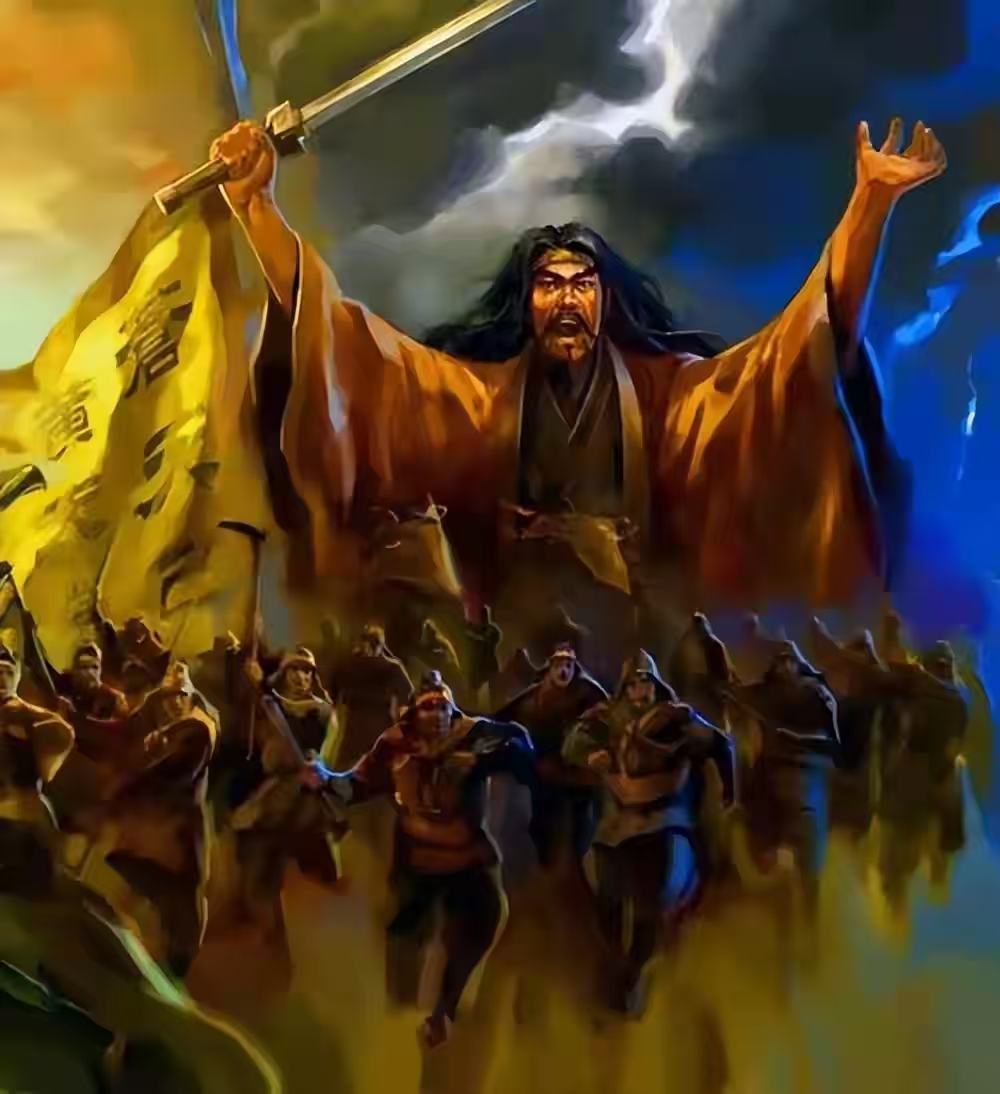 公元184年,张角打着“苍天已死,黄天当立”的口号起义,自称“天公将军”,兄弟张宝、张梁分别为“地公将军”“人公将军”。