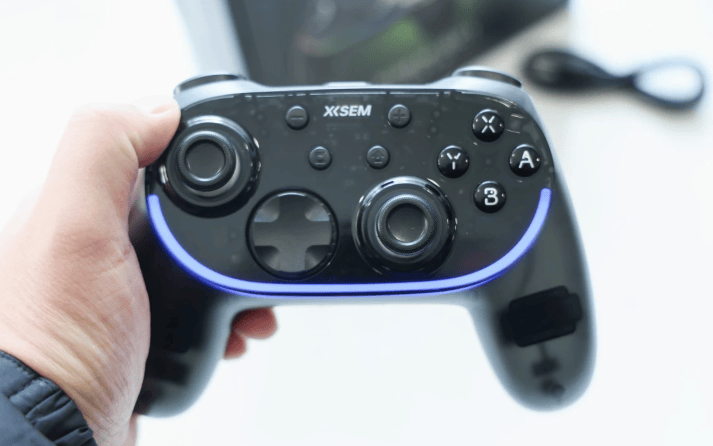 西圣GC1搭载电竞级极速连接引擎,延迟低至0.5ms,支持2.4G、蓝牙及Type-C三模连接,操作几乎无感延迟。原生六轴体感传感器实现旋转、倾斜、挥动等动作的1ms级低延迟精准映射,沉浸式操控体验一触即发。手柄轻量化设计(214g)、握角科学(15°)、NanoSkin亲肤防滑涂层贴合手型,握持稳固舒适;半透明幻雾晶透机身配合RGB炫酷灯效与10种模式,科技质感满分。全平台兼容性极强,Switch、PC、手机均可轻松畅玩,让这款百元级手柄的整体配置和体验在同价位中几乎无敌。