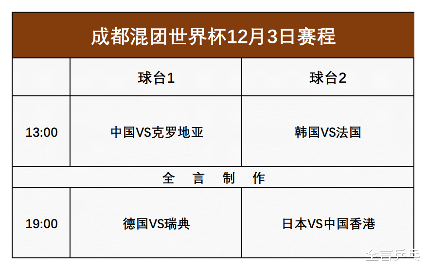 北京时间2025年12月3日,乒乓球成都混合团体世界杯即将迎来第四天的对决,同时开启第二阶段8强循环赛的序幕。而在此前的小组循环赛中,国乒豪取3连胜且只输1局,8位参赛运动员中的6人已结束首秀,接下来将在第四个比赛日对阵克罗地亚选手,详细战况与最新赛程请看下文。