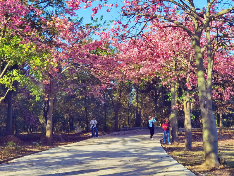 走到绵延误3公里长的美丽异木棉大道,幽静且蜿蜒,沿着一路旖旎灿烂的木棉花前行,心刹那间安静下来,此时才是真正属于内心的另一个自己,没有了纷扰与尘嚣。