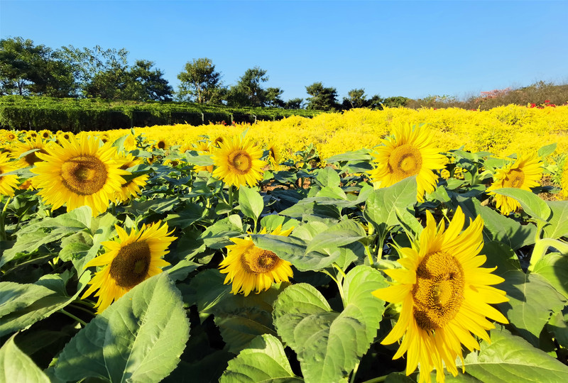 走入园区花海,满园盛放的花卉装饰这个季节,美丽了整个秋天,让人感觉季节没有流转,时光没有四季。各种时花吐露着芳香与嫣然,色彩绚丽,五彩缤纷。蜜蜂采蜜的声音不时传入耳中,蝴蝶授粉的身影不时映我们的眼帘。置身于花海深处的我们,安守这一刻静美的时光,轻拥这些不染纤尘的美好,洗净我们心灵的纷杂与喧嚣。