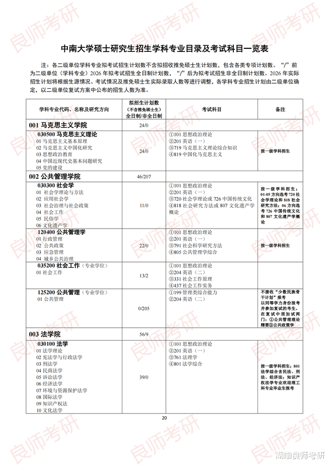 《中南大学硕士研究生招生学科专业目录及考试科目一览表》中的拟招生人数为 2026 年各二级单位各学科专业拟考试招生计划数(不含拟招收推免硕士生计划)。我校 2026 年将继续扩大推免生的接收规模,实际招生计划将根据生源情况、考试情况及推免生实际录取人数等进行调整,各学科专业招生计划由二级单位确定,以二级单位复试方案中公布的招生人数为准。