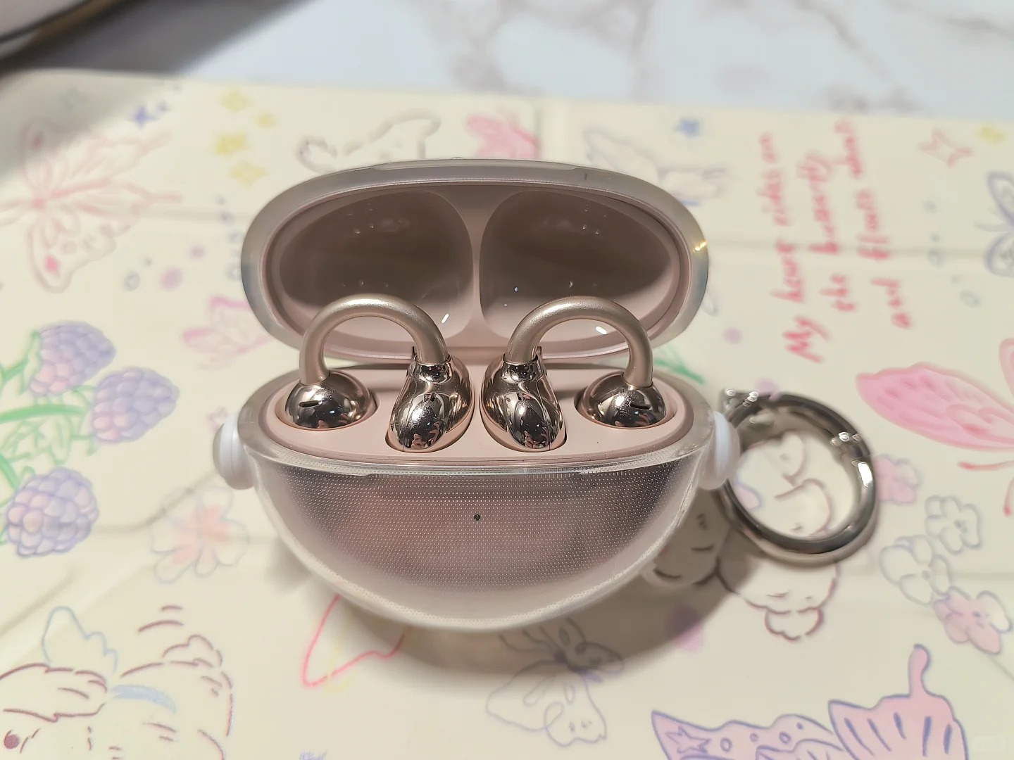 如果经常长时间戴耳机,这款的佩戴舒适度值得重点看。它的耳夹用了记忆钛合金丝,能跟着耳朵形状调整弧度,不会像硬塑料那样勒耳朵,再加上 Ω 弧形桥设计,受力更均匀,单只 5.3 克的重量,连续戴三四个小时,耳朵也没觉得酸胀。