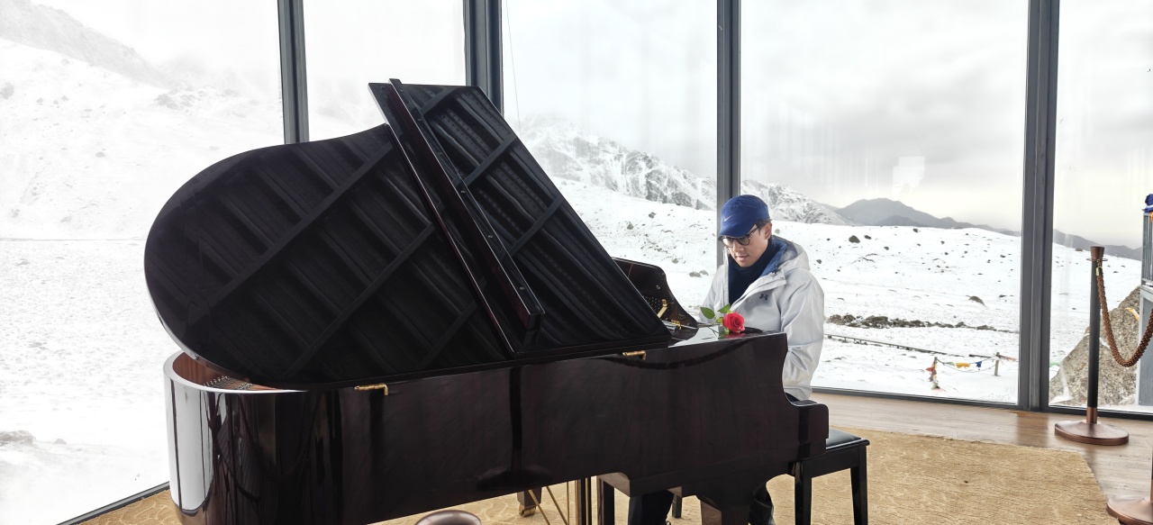十月,甘肃酒泉,河西走廊,雪中钢琴