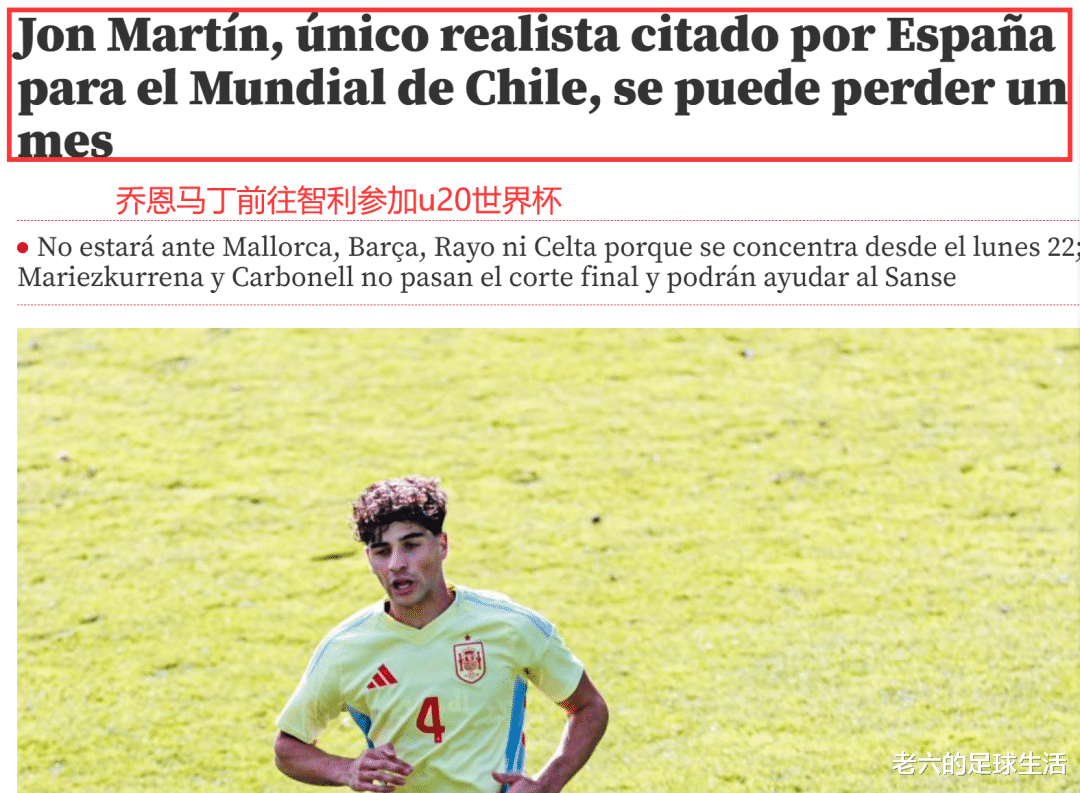 球队的中后卫乔恩·马丁也被选入西班牙u20国家队,他要随队前往智利参加U20世界杯,那接下来俱乐部的中后卫只剩下卡尔跟祖贝迪亚了。