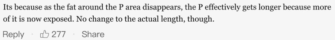 这位网友表示自己打减肥针瘦了后,丁丁比4年前长了2.5厘米左右,想问下有没有男士有一样的经历。
