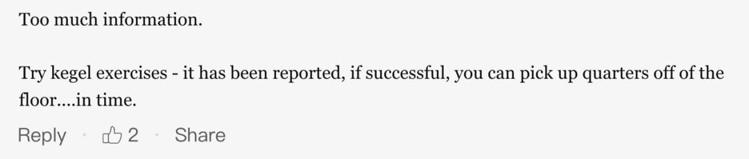 “这信息量也太大了。试试凯格尔运动,有报道说一段时间内坚持成功的话,可以收回去的。”