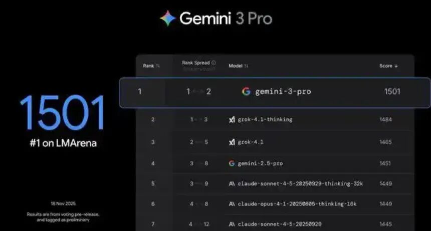 目前,Gemini 3 Pro 排在广泛使用的评测平台 LMArena 榜首。其 Deep Think 模式进一步强化推理能力,但暂时只向安全测试人员开放。