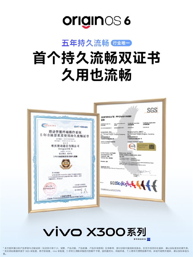 性能更是全面跃升,蓝晶×天玑9500由vivo深度调校,能效比更优,游戏稳帧不烫手;京东方Q10 Plus护眼屏支持全亮度2160Hz PWM调光,久看不累眼;OriginOS 6获得5年流畅双认证,应用启动快、系统更持久,还支持摇一摇群组分享、跨端修图等实用功能。