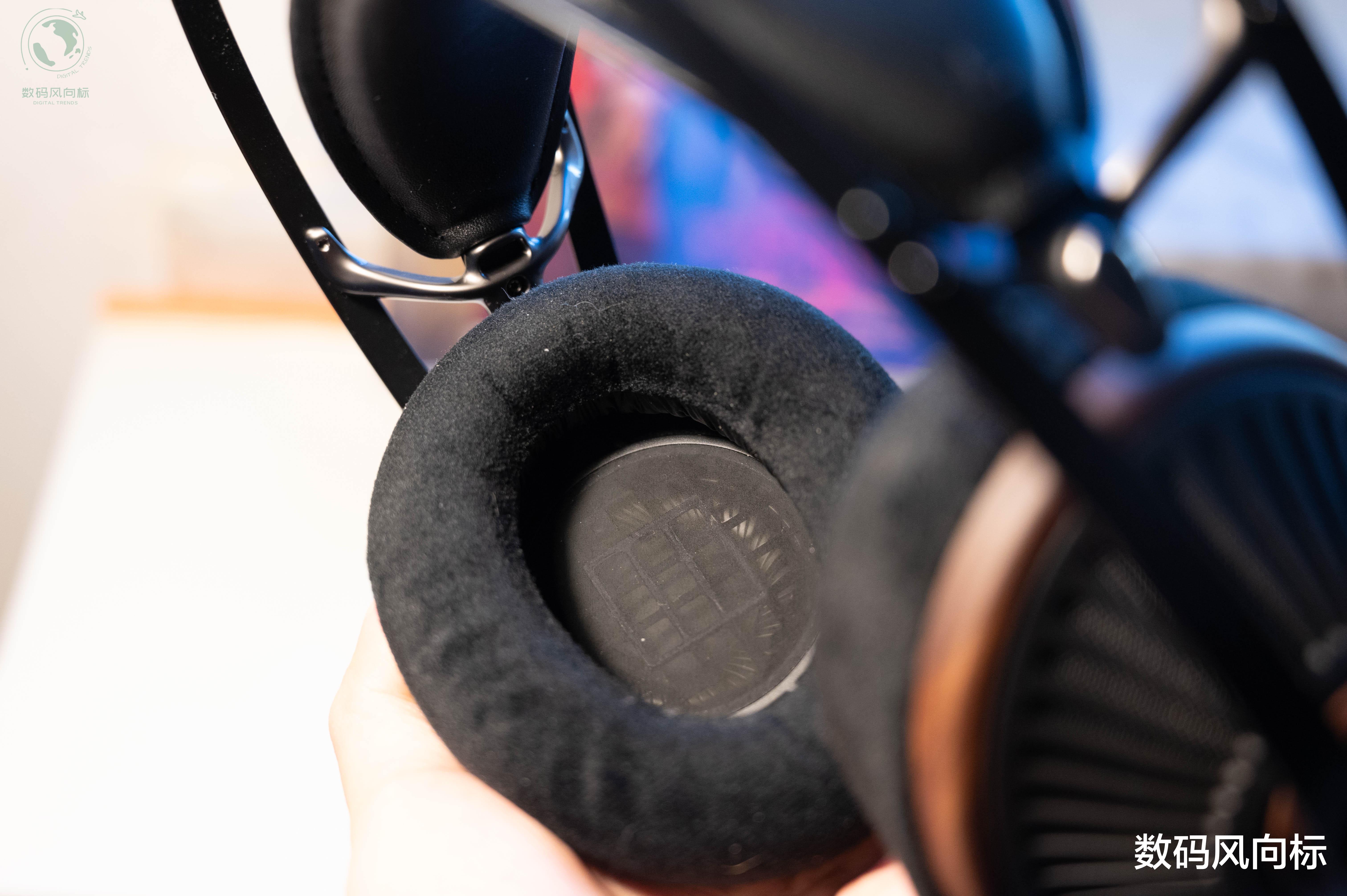 109 Pro的自适应头梁设计由纯植物皮革制成的头带并辅以天鹅绒耳罩,加厚的耳罩能有效避免耳朵接触到单元滤网。 轻量化人体工学设计(375克)配合合理的重量分布,让佩戴时几乎感受不到什么负担。 我实测可连续佩戴数小时仍然没有任何的不适感,这绝对是我体验过最舒适的耳机之一。