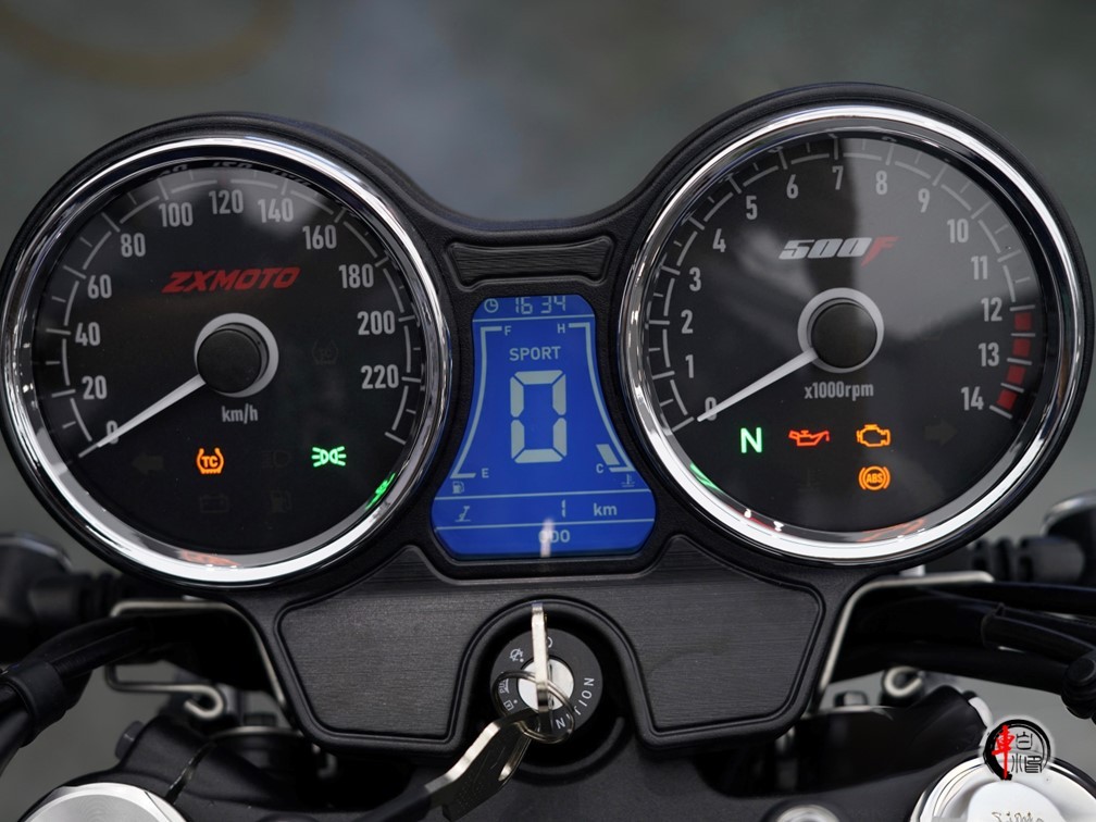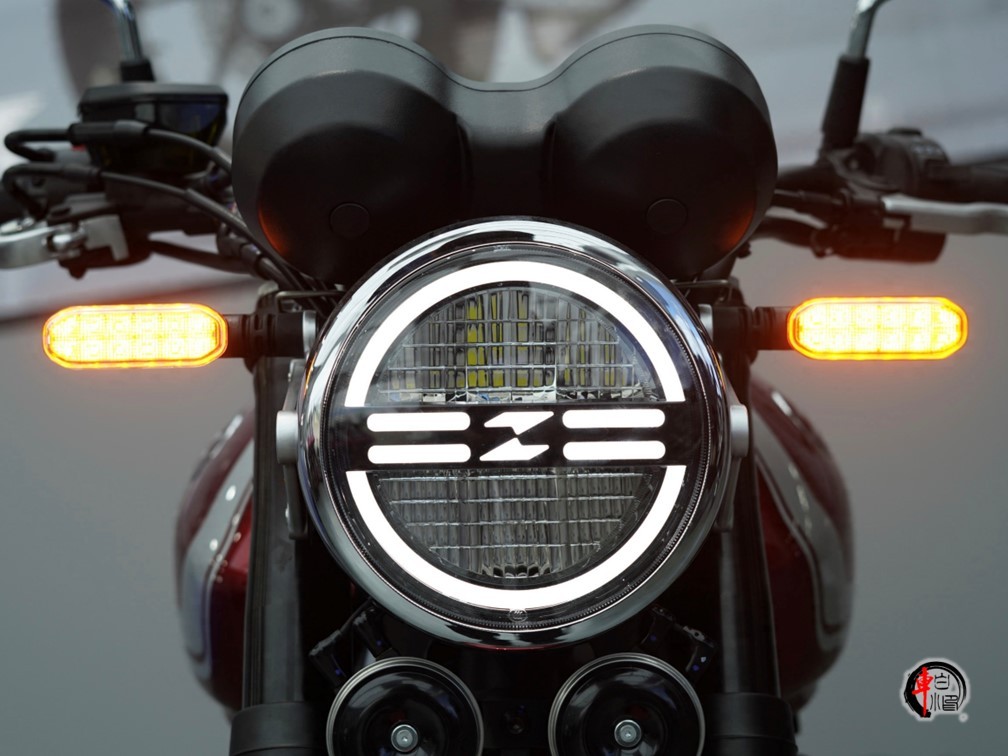灯组采用 LED 光源,圆形前大灯照明范围充足,环形日行灯带增强日间安全性,Z 字形 LED 尾灯造型独特,夜间警示效果清晰。车机系统采用双圆形机械指针+中央LCD液晶仪表的组合,布局在保留经典视觉的同时,提供了时速、转速、油量等必要信息的清晰读数。此外,还配备胎压监测、倾倒熄火、边撑熄火等安全功能。