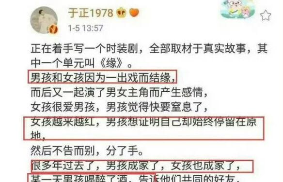 编剧于正在微博上发布了一篇名为《缘》的创作手记。