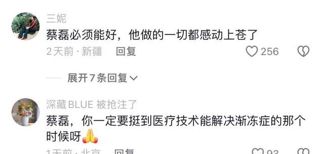相比于以前的大量恶评,蔡磊用行动打了他们的脸,蔡磊一直在给和他有同样经历的人希望,也一直在努力前行,用尽了自己所有去解决渐冻症这个病魔。