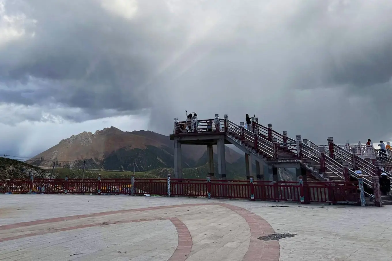 登顶业拉山垭口的观景广场,这里的设施比较齐备,不过我们到的时候有些晚了,广场上游客稀少,多数游人已经下山奔往 八宿 去了。