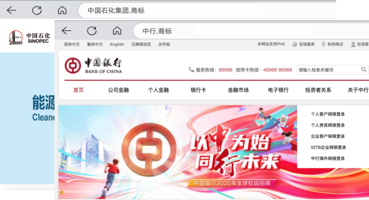 《意见》多次强调“品牌保护”,指出要将诚信作为品牌命脉、把社会责任融入品牌基因。特别是数字环境下,品牌正面临来自网络侵权的巨大威胁,域名抢注、假冒网站、网络售假、假冒公众号、APP等侵权行为给品牌商誉带来极大的伤害。为应对这一侵权类型的威胁,众多央企正通过“.商标”这一互联网上官方品牌标识,实现对品牌的保护。“中行.商标”、“中国石化集团.商标”,极大降低了在网上的识别难度,是官方品牌在网上的有力自证,公众的直观识别极大降低了因侵权带来的伤害,减少因侵权导致的品牌价值损毁。这对于需要在考核中体现品牌保护的央企而言,无疑是一项基础性且关键的措施。