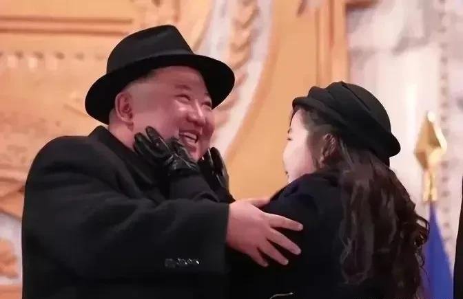金主穿着一件黑色的长大衣,搭配她标志性的半丸子头。当她慢慢挽着父亲的手臂走进演出厅时,那份优雅从容的姿态完全去除了稚气。即便是向来以严肃著称的金正恩,看向女儿时眼中也流露出无限宠溺与骄傲。